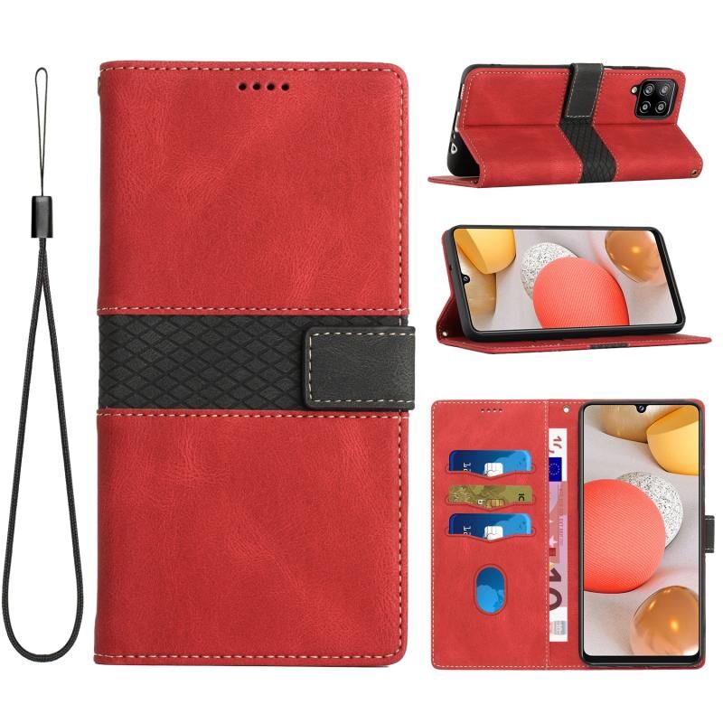 Για Samsung Galaxy A42 / M42 5G Grid Stitching Δερμάτινη θήκη τηλεφώνου με κορδόνι (κόκκινο)