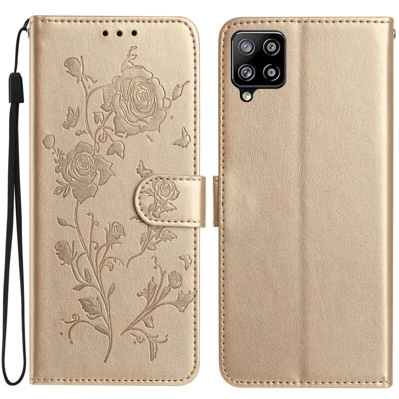 Θήκη τηλεφώνου δερμάτινη με ανάγλυφο σχέδιο ροζ λουλουδιού για Samsung Galaxy A42 (Χρυσό Ροζ)