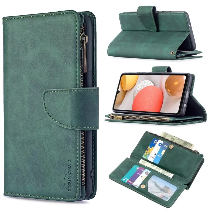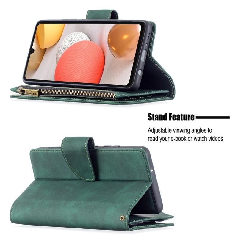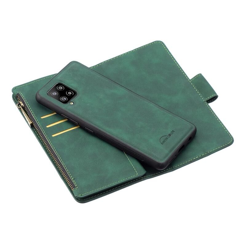 Για Samsung Galaxy A42 Skin Feel Αποσπώμενο μαγνητικό φερμουάρ Οριζόντια Flip PU δερμάτινη θήκη με υποδοχές για πολλαπλές κάρτες & θήκη & πορτοφόλι & κορνίζα & κορδόνι (πράσινο)