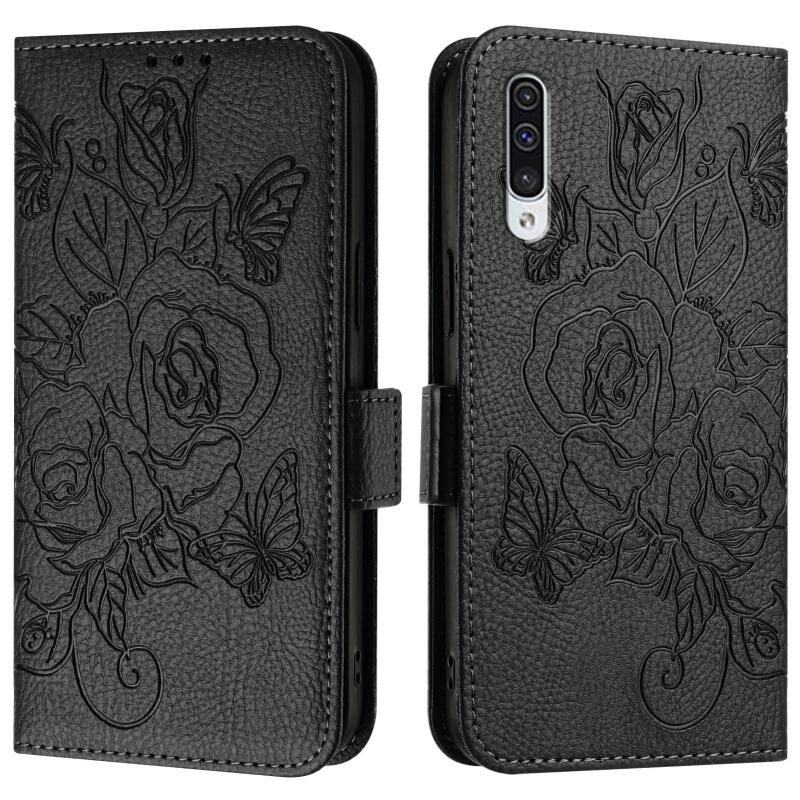 Για Samsung Galaxy A50 / A30s / A50s ανάγλυφο Rose RFID Anti-theft Δερμάτινη θήκη τηλεφώνου (Μαύρο)