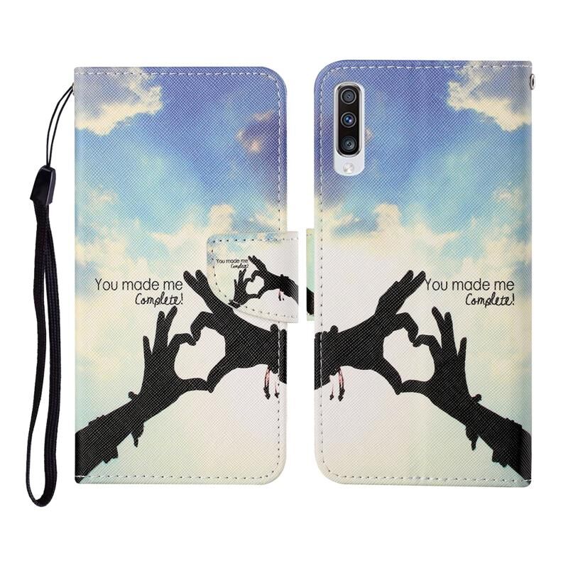 Θήκη δέρματος οριζόντιας αναδίπλωσης με σχέδια ζωγραφικής και χρώματα για Samsung Galaxy A50 / A30s, με βάση στήριξης, θήκες καρτών, πορτοφόλι και λουρί (Χειρονομία Αγάπης)