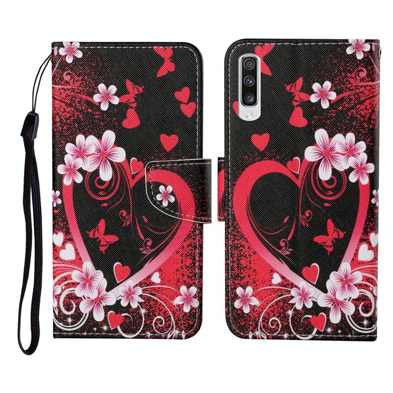 Θήκη δέρματος οριζόντιας αναδίπλωσης με σχέδια ζωγραφικής σε χρώματα για Samsung Galaxy A50 / A30s με βάση στήριξης & υποδοχές καρτών & πορτοφόλι & κορδόνι (Κόκκινη Καρδιά)