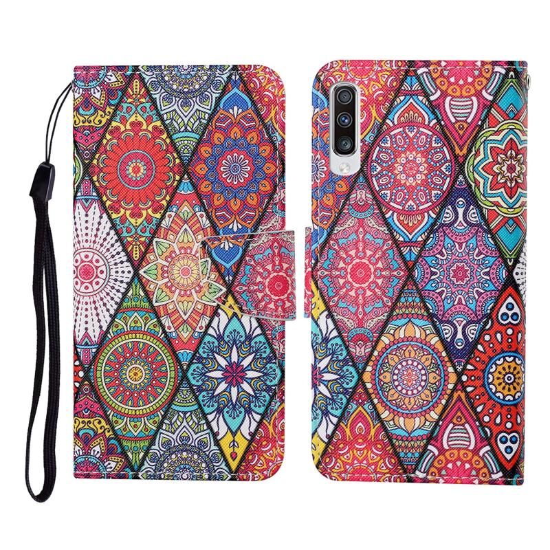Θήκη δέρματος οριζόντιας αναδίπλωσης με σχέδια πολύχρωμων ζωγραφιών για Samsung Galaxy A50 / A30s με βάση στήριξης & υποδοχές καρτών & πορτοφόλι & κορδόνι (Ρομβοειδές Τότεμ)
