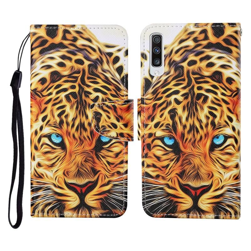 Θήκη δέρματος οριζόντιας αναδίπλωσης με σχέδια ζωγραφικής σε χρώματα για Samsung Galaxy A50 / A30s με βάση στήριξης & υποδοχές καρτών & πορτοφόλι & κορδόνι (Μαύρος Πλανήτης)