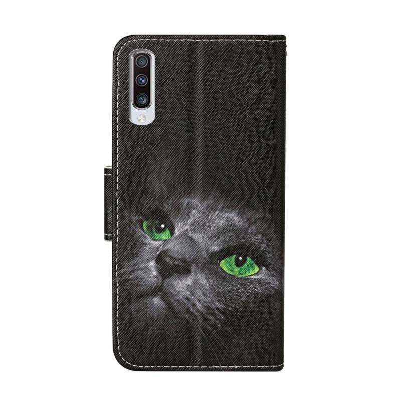 Θήκη δέρματος οριζόντιας αναδίπλωσης με σχέδια πολύχρωμης ζωγραφικής για Samsung Galaxy A50 / A30s με βάση & υποδοχές καρτών & πορτοφόλι (Σχέδιο Γάτας)