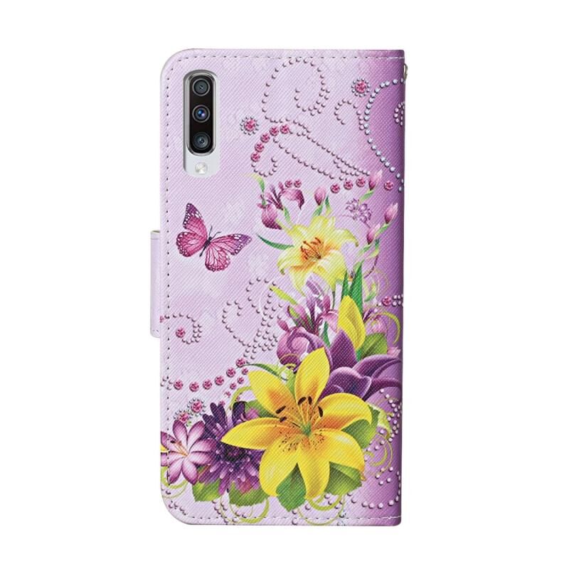Θήκη δέρματος οριζόντιας αναδίπλωσης με σχέδια ζωγραφικής και χρώματα για Samsung Galaxy A50 / A30s με βάση στήριξης & υποδοχές καρτών & πορτοφόλι (Lily)