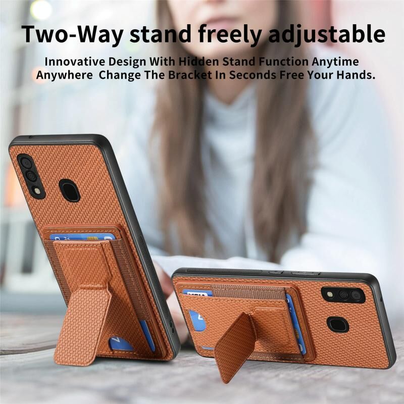 For Samsung Galaxy A50/A50s/A30s Carbon Fiber Fold Stand Elastic Card Bag Phone Case(Brown)