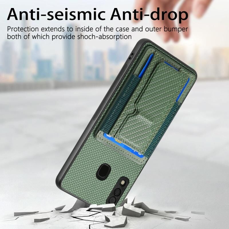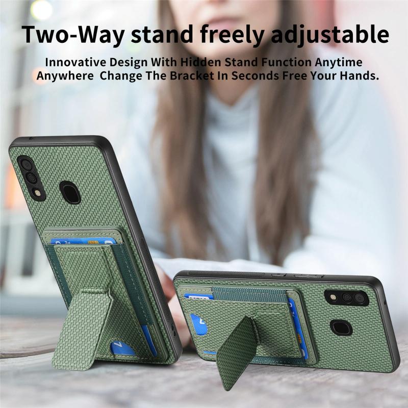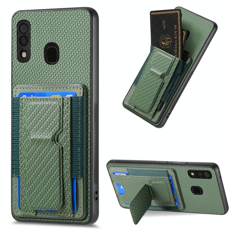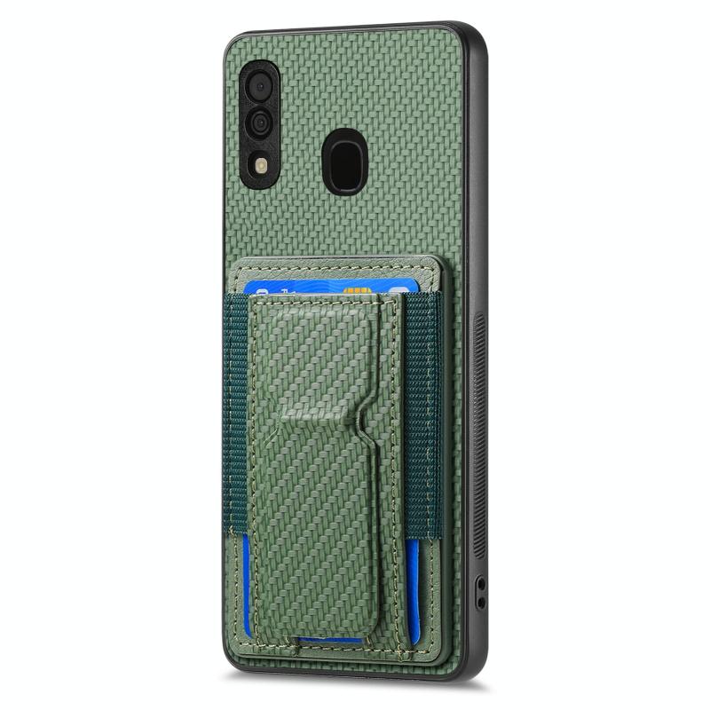 For Samsung Galaxy A50/A50s/A30s Carbon Fiber Fold Stand Elastic Card Bag Phone Case(Green)