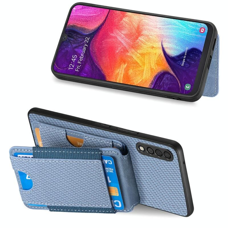 Για Samsung Galaxy A50 / A50s / A30s Carbon Fiber Κάθετη Flip Wallet Stand υπόθεση τηλεφώνου (μπλε)