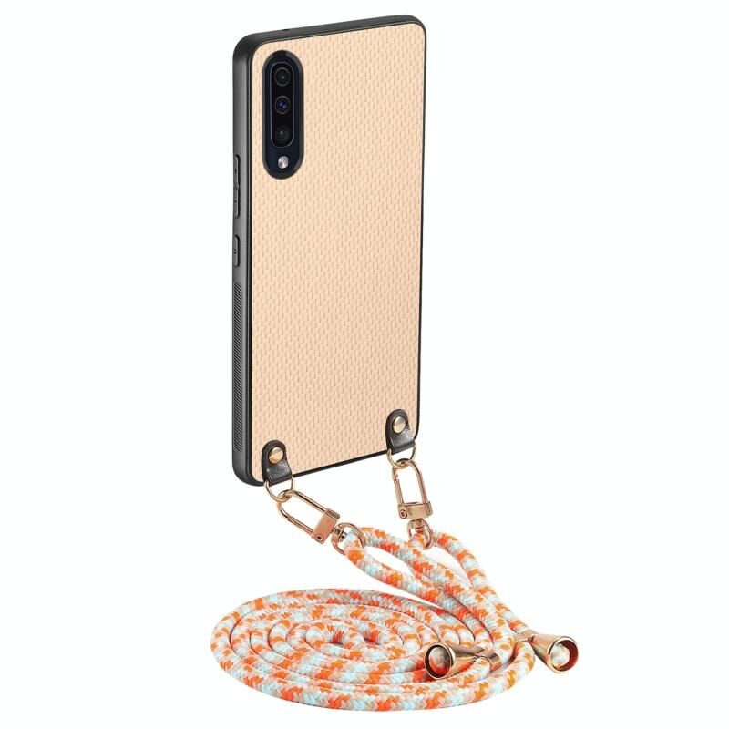 Για Samsung Galaxy A50 / A50s Carbon Fiber Texture δέρμα πίσω κάλυμμα τηλέφωνο υπόθεση με λουράκι σταυρού (χακί)