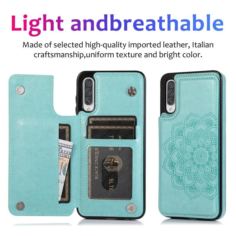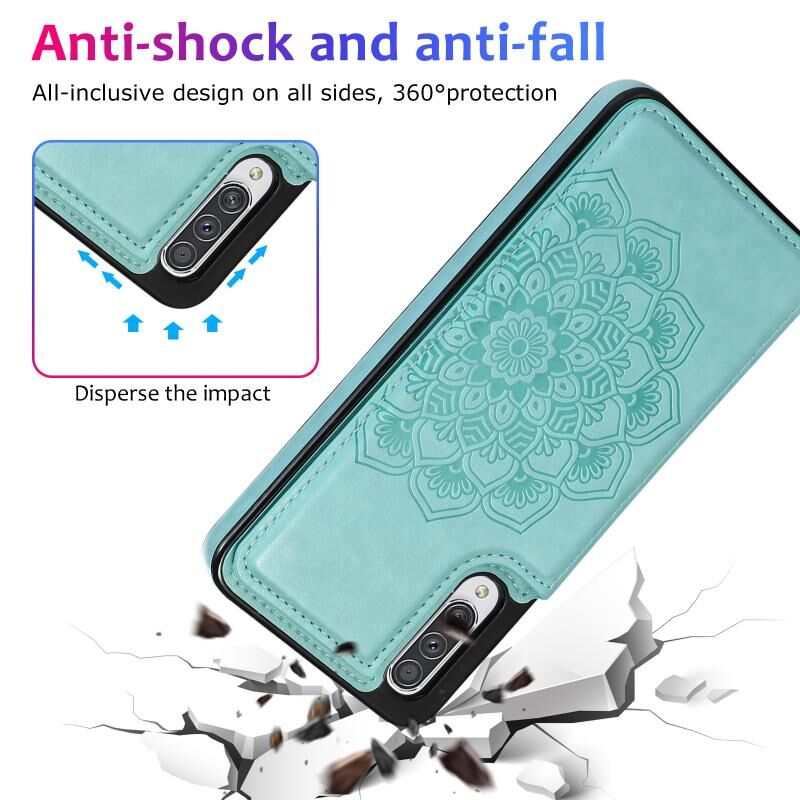 Θήκη προστασίας για Samsung Galaxy A50 / A50s με διπλή αγκράφα, σχέδιο Mandala από PU+TPU με υποδοχές καρτών & βάση στήριξης & κορνίζα φωτογραφιών (Πράσινο)