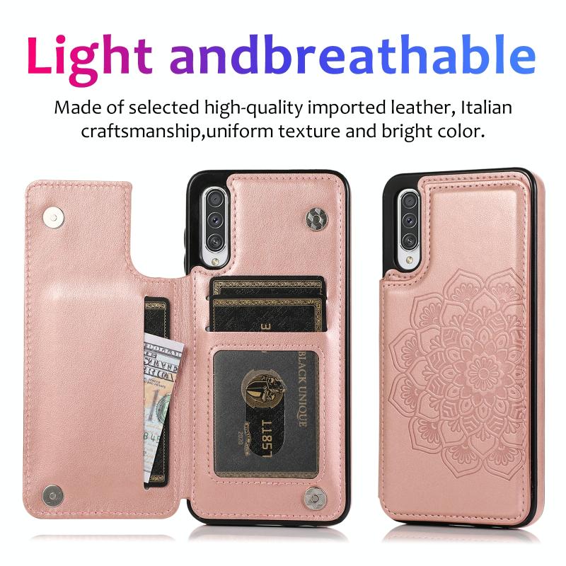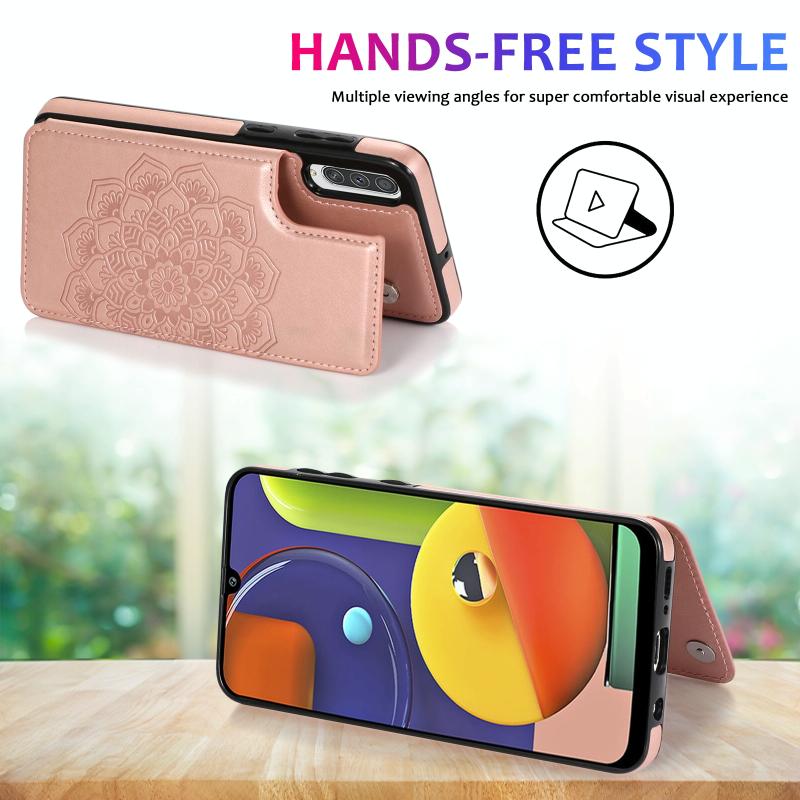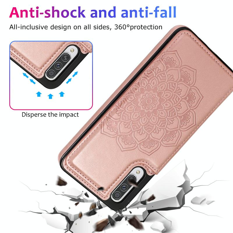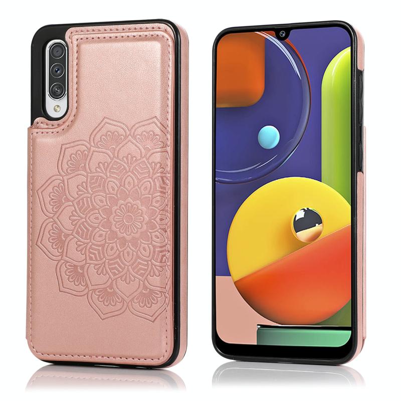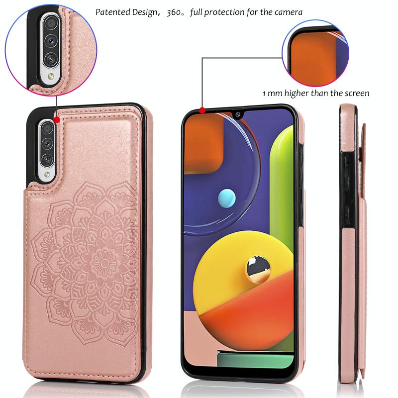 Θήκη προστασίας για Samsung Galaxy A50 / A50s με διπλή αγκράφα, μοτίβο Mandala από PU+TPU με υποδοχές καρτών & βάση στήριξης & κορνίζα φωτογραφιών (Μπλε)