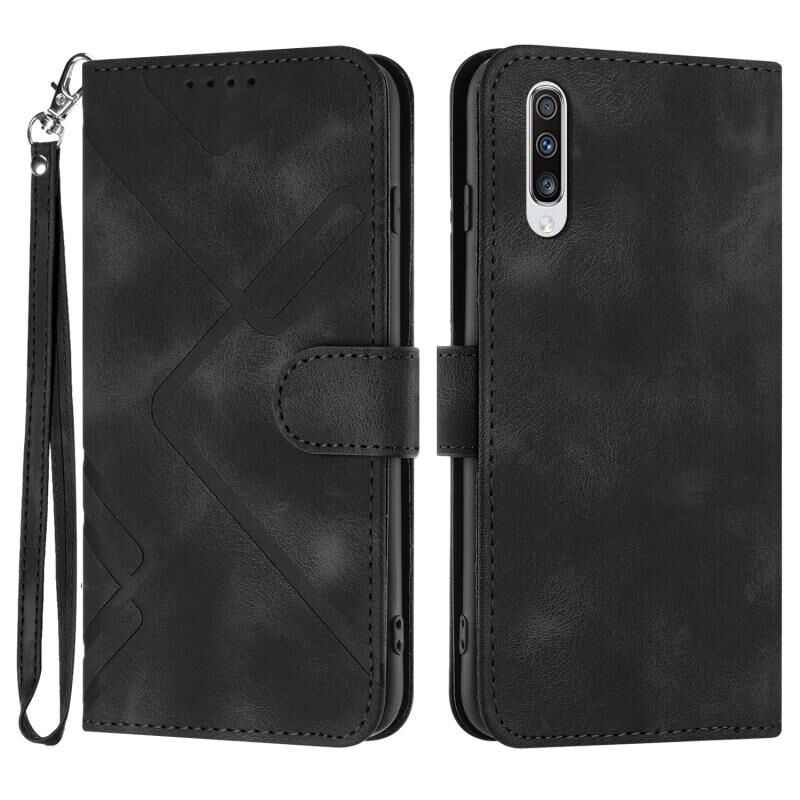 Για Samsung Galaxy A50 / A50s Γραμμή μοτίβο δέρμα αίσθηση δέρμα τηλέφωνο υπόθεση (μαύρο)