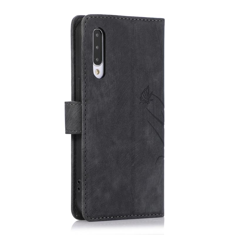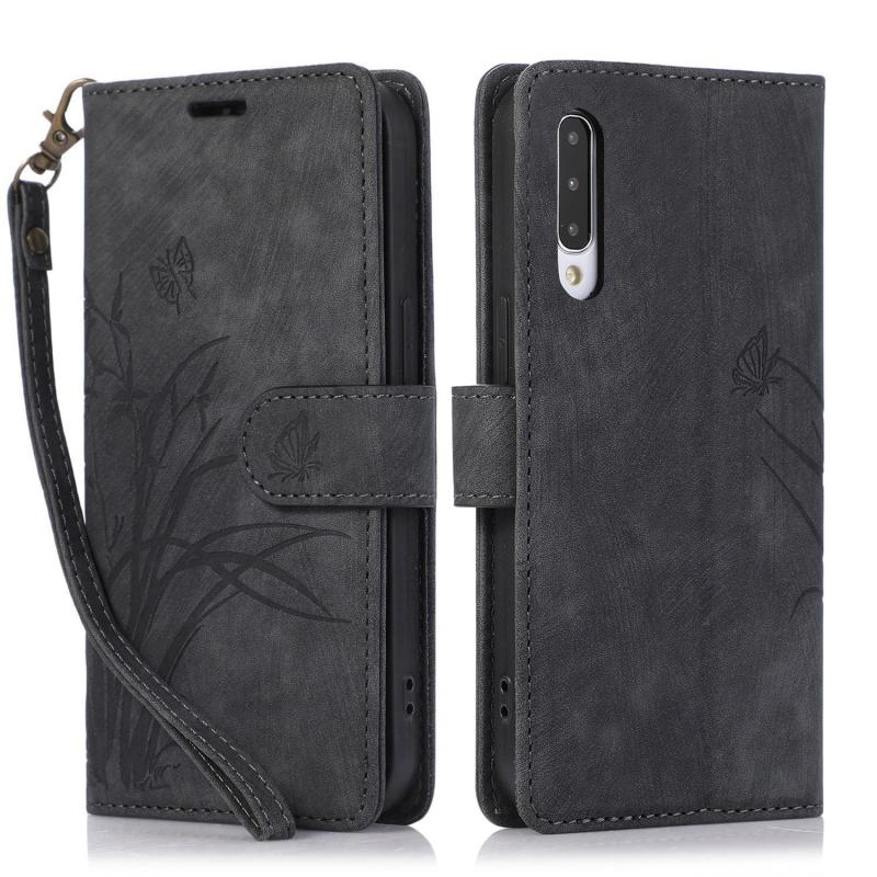 For Samsung Galaxy A50 / A50s Orchid Butterfly Embossed Leather Phone Case(Black)