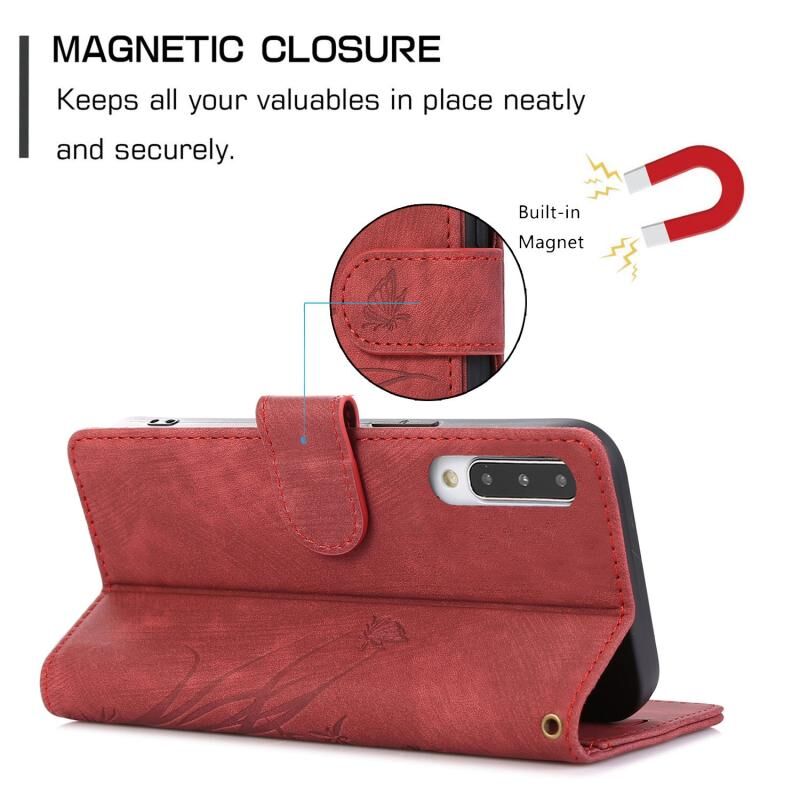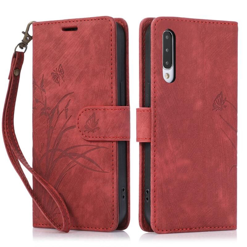 Θήκη τηλεφώνου δερμάτινη ανάγλυφη με σχέδιο ορχιδέας και πεταλούδας για Samsung Galaxy A50 / A50s (Μαύρο)