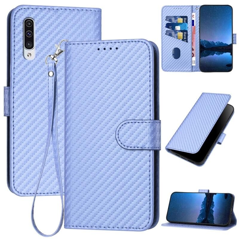 Για Samsung Galaxy A50 / A50s YX0070 Carbon Fiber Πόρπη δερμάτινη θήκη τηλεφώνου με κορδόνι (ανοιχτό μοβ)