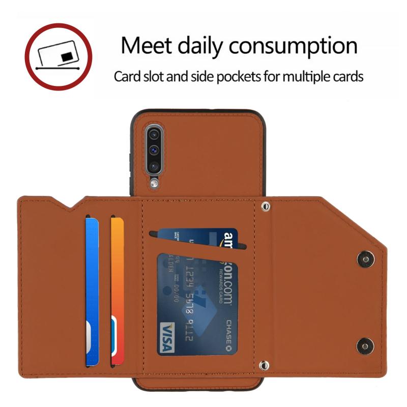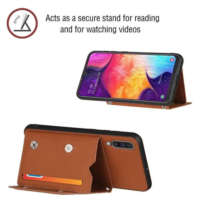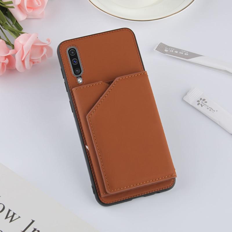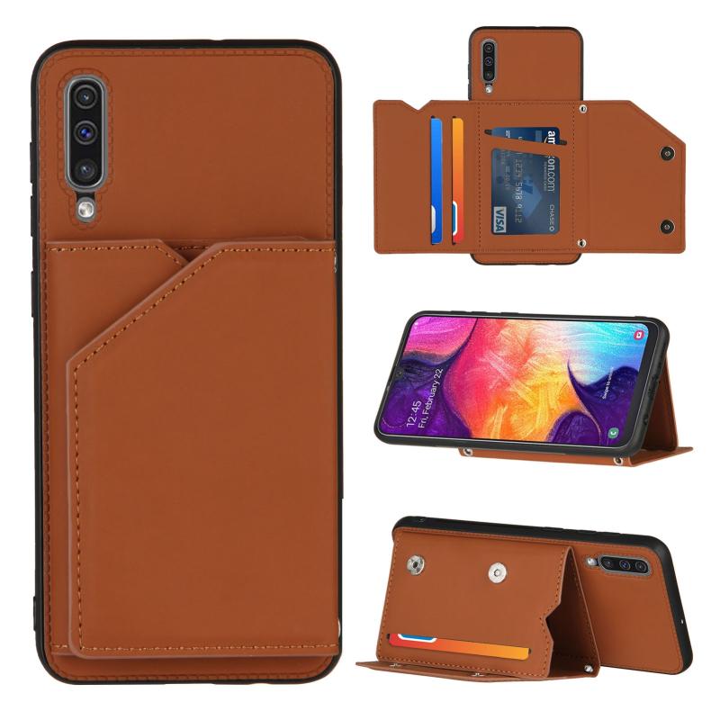 Θήκη για Samsung Galaxy A50 & A30s & A50s με αίσθηση δέρματος PU + TPU + PC, ανθεκτική στις κρούσεις, με θήκες για κάρτες & βάση στήριξης & κορνίζα φωτογραφιών (Καφέ)