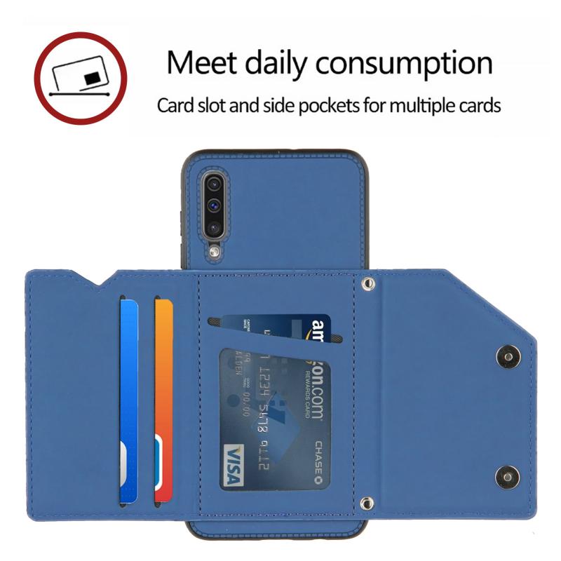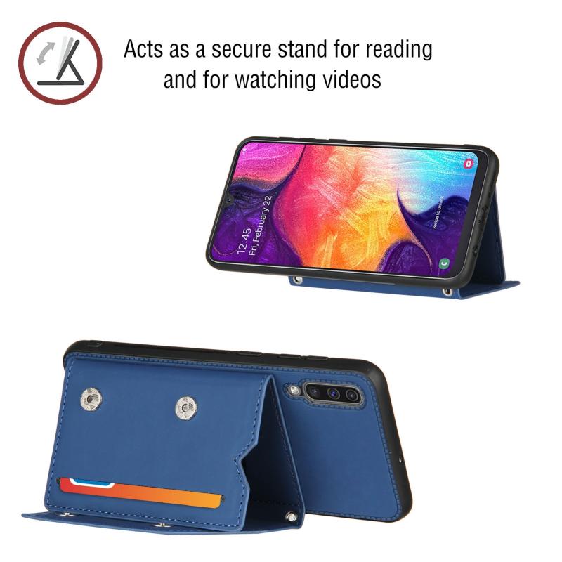 Θήκη για Samsung Galaxy A50 & A30s & A50s με αίσθηση δέρματος PU + TPU + PC, ανθεκτική στις κρούσεις, με θήκες για κάρτες & βάση στήριξης & κορνίζα φωτογραφιών (Βασιλικό μπλε)