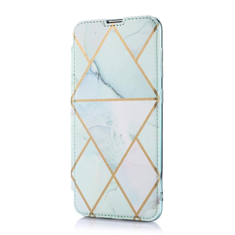Θήκη δέρματος οριζόντιας αναδίπλωσης PU + TPU με επιμετάλλωση μπρούντζου για Samsung Galaxy A50 με βάση & υποδοχή κάρτας (Μαύρο)