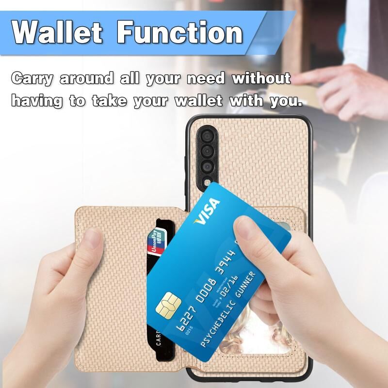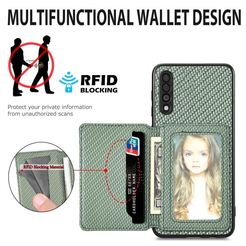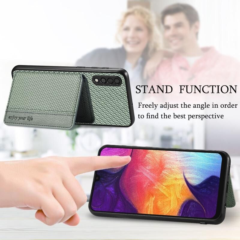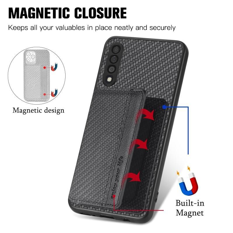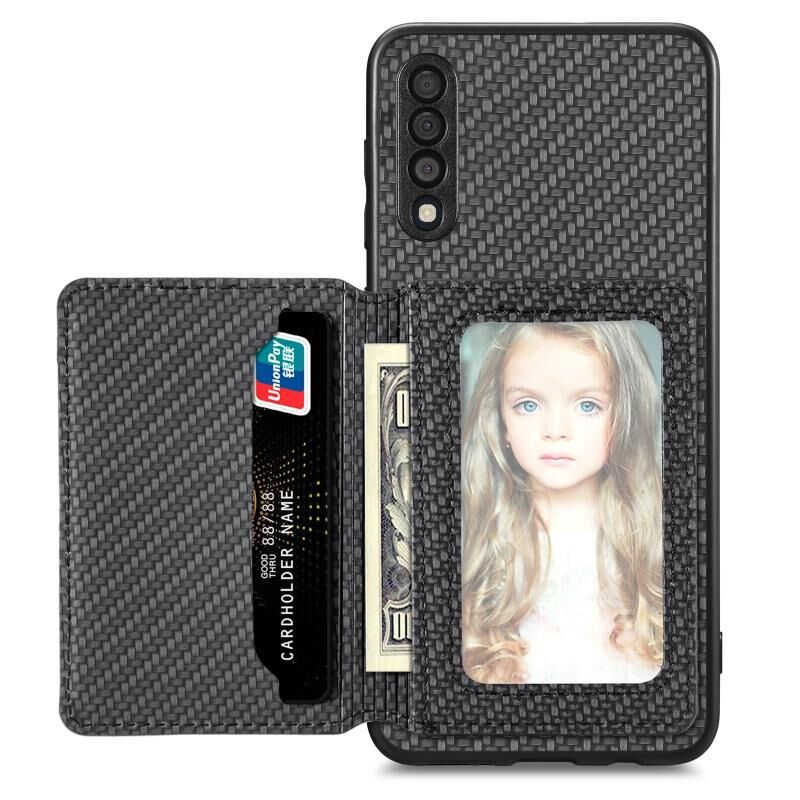 Για Samsung Galaxy A50 Carbon Fiber μαγνητική κάρτα πορτοφόλι τσάντα θήκη τηλεφώνου (Μαύρο)