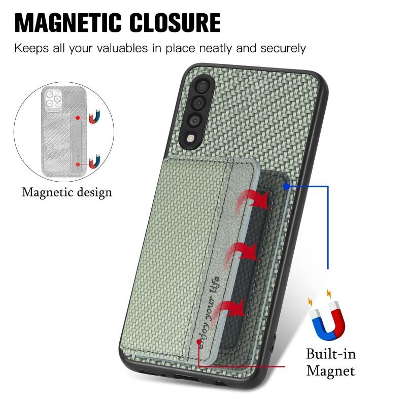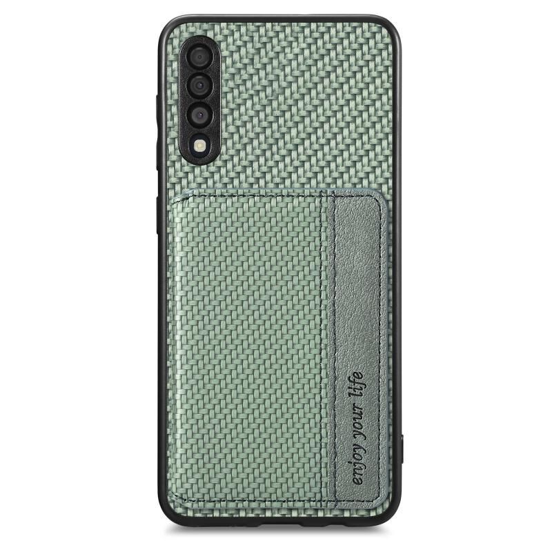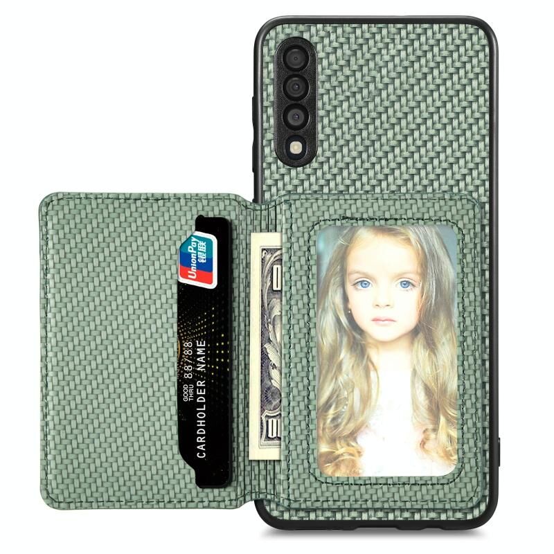 Για Samsung Galaxy A50 Carbon Fiber Μαγνητική κάρτα πορτοφόλι τσάντα θήκη τηλεφώνου (πράσινο)