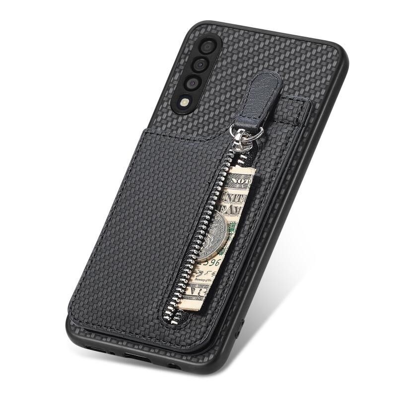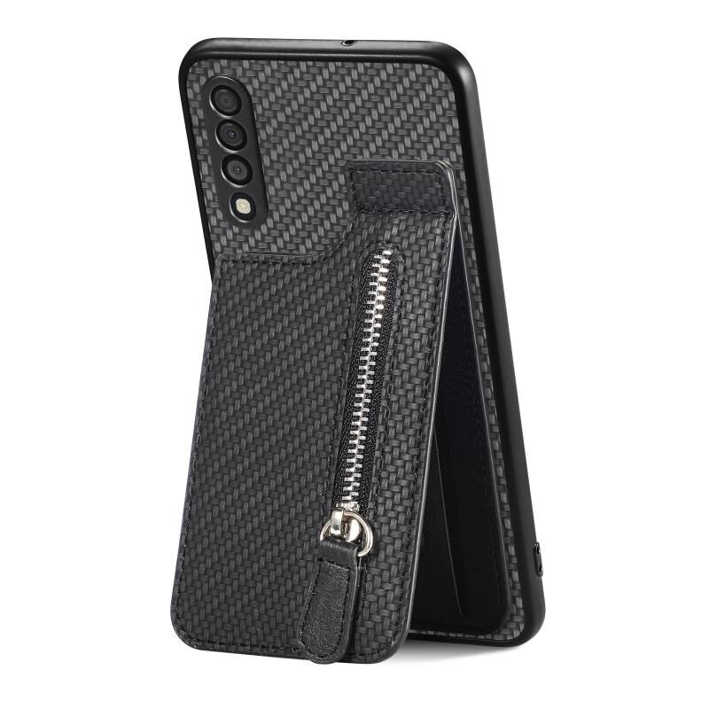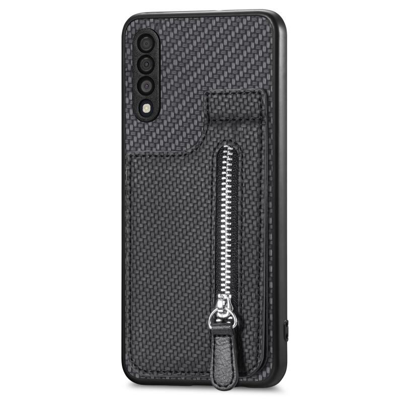Για Samsung Galaxy A50 Carbon Fiber Κάθετη Flip φερμουάρ Wallet υπόθεση τηλεφώνου (Μαύρο)