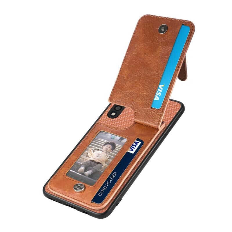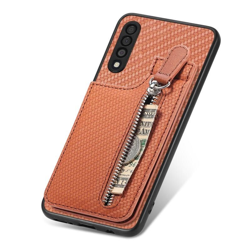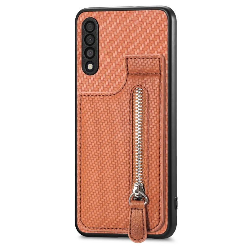 Για Samsung Galaxy A50 Carbon Fiber Κάθετη Flip φερμουάρ Wallet υπόθεση τηλεφώνου (καφέ)