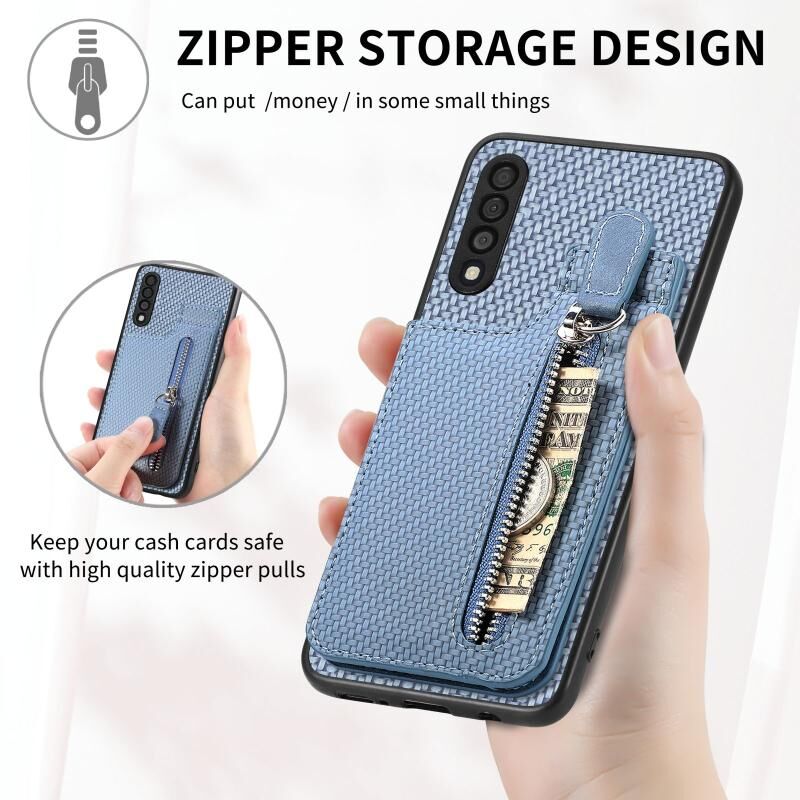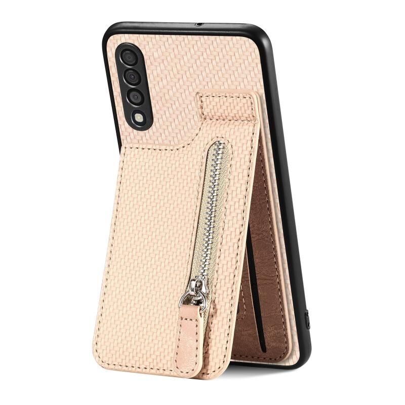 Για Samsung Galaxy A50 Carbon Fiber Κάθετη Flip φερμουάρ Wallet υπόθεση τηλεφώνου (χακί)