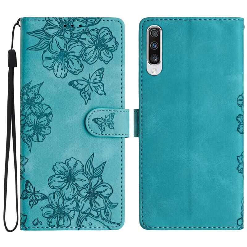 Θήκη τηλεφώνου Samsung Galaxy A50 Cherry Blossom Butterfly με ανάγλυφη υφή PU (Κόκκινη)