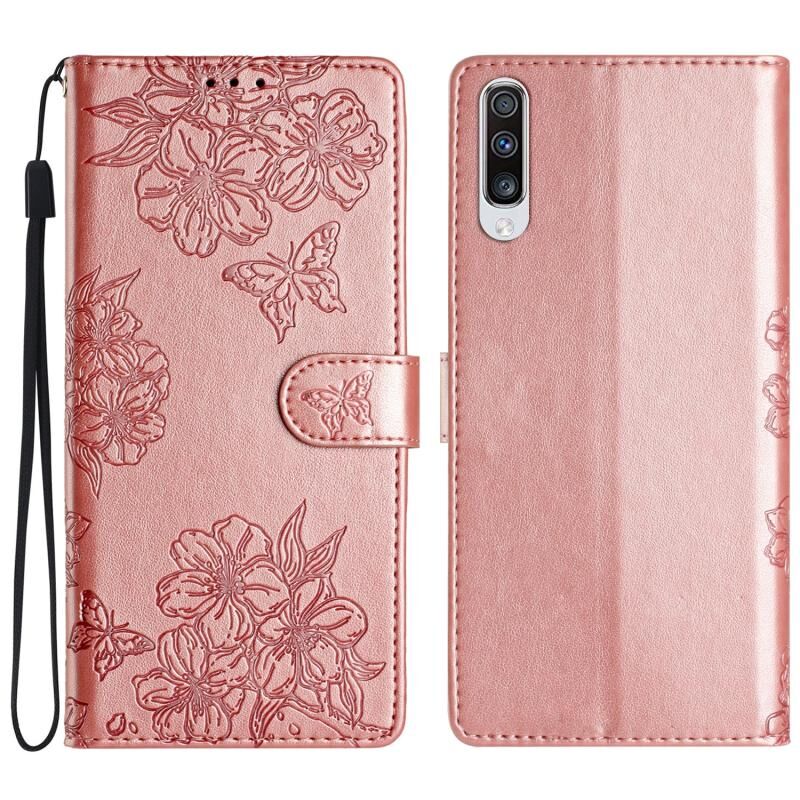 Θήκη τηλεφώνου Samsung Galaxy A50 Cherry Blossom Butterfly με ανάγλυφη υφή PU (Κόκκινη)