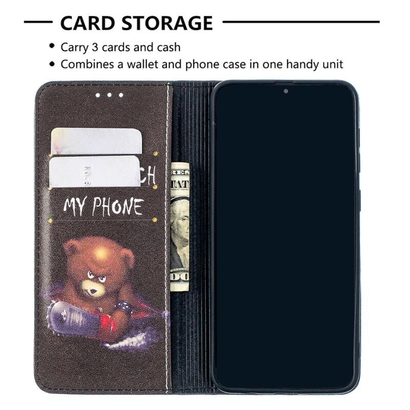 Θήκη Samsung Galaxy A50, πολύχρωμη με σχέδιο, αόρατη μαγνητική οριζόντια από δερματίνη PU με βάση & θήκες για κάρτες & πορτοφόλι (Αρκούδα)