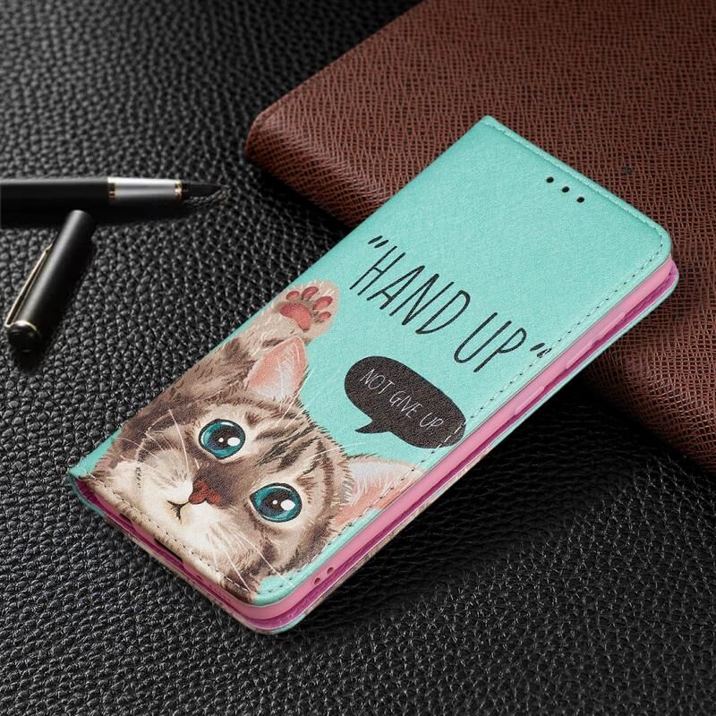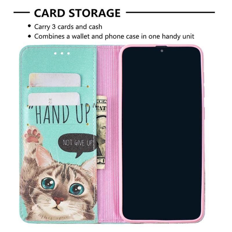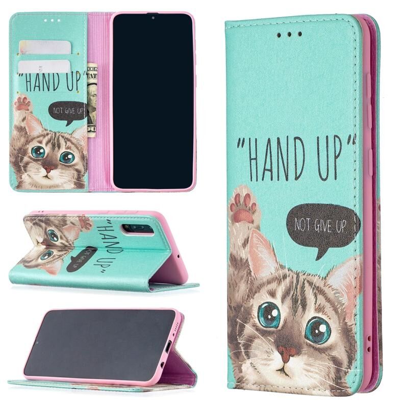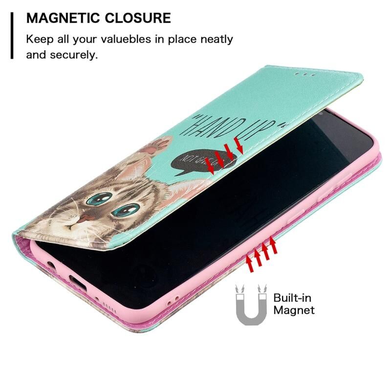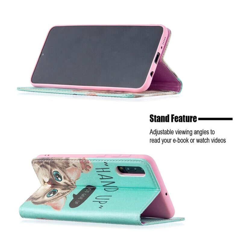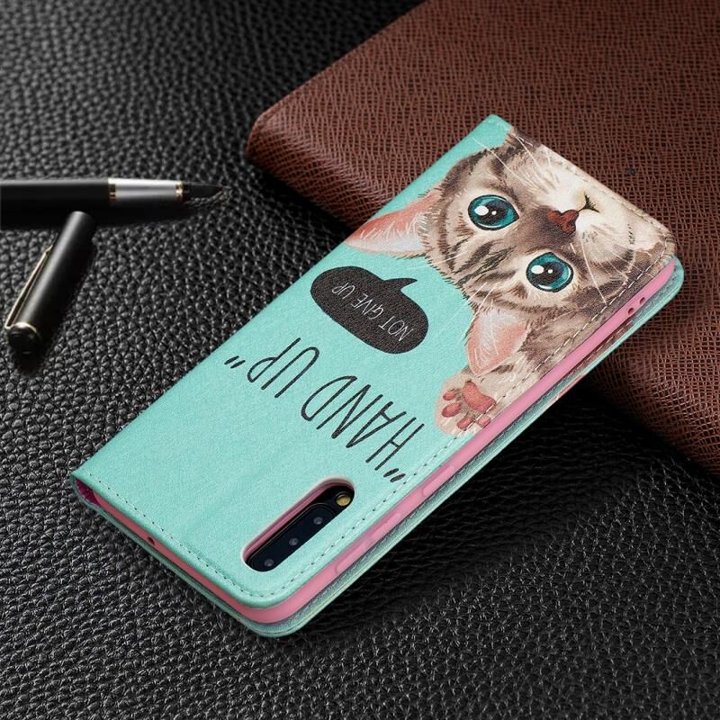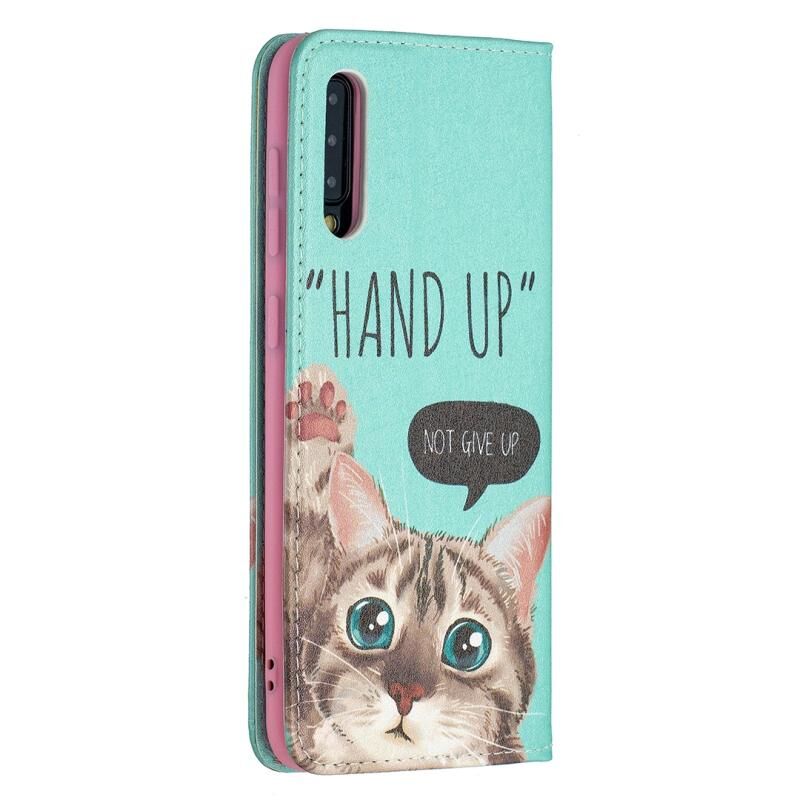 Θήκη Samsung Galaxy A50, πολύχρωμη με σχέδιο, αόρατη μαγνητική οριζόντια από δερματίνη PU με βάση & θήκες για κάρτες & πορτοφόλι (Γάτα)