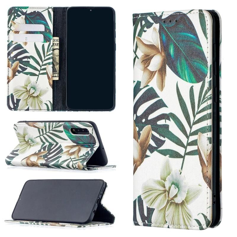Θήκη Samsung Galaxy A50, πολύχρωμη με σχέδιο, αόρατη μαγνητική οριζόντια από δερματίνη PU με βάση & θήκες για κάρτες & πορτοφόλι (Μπλε Φύλλο)