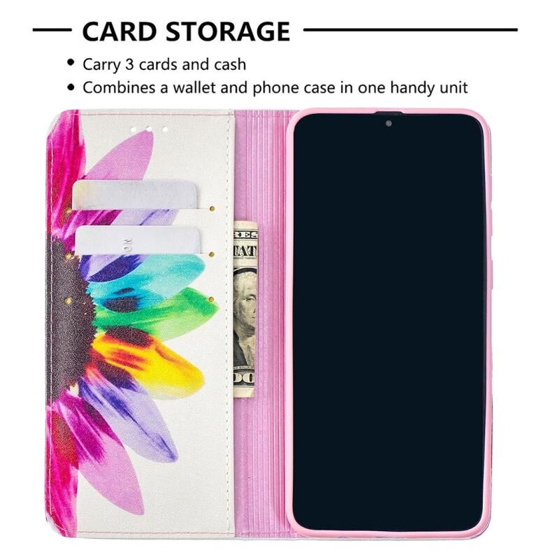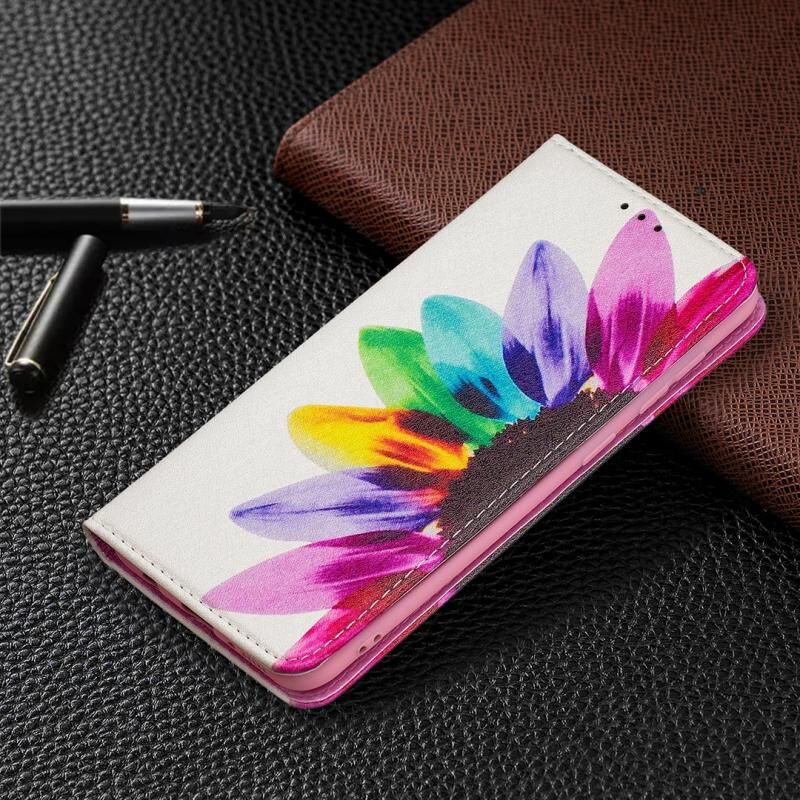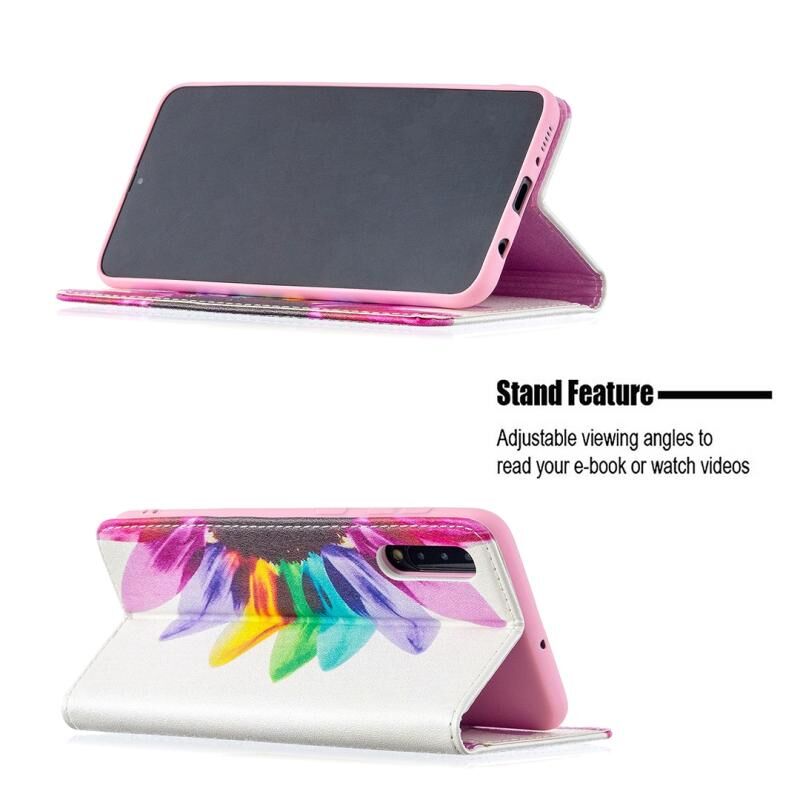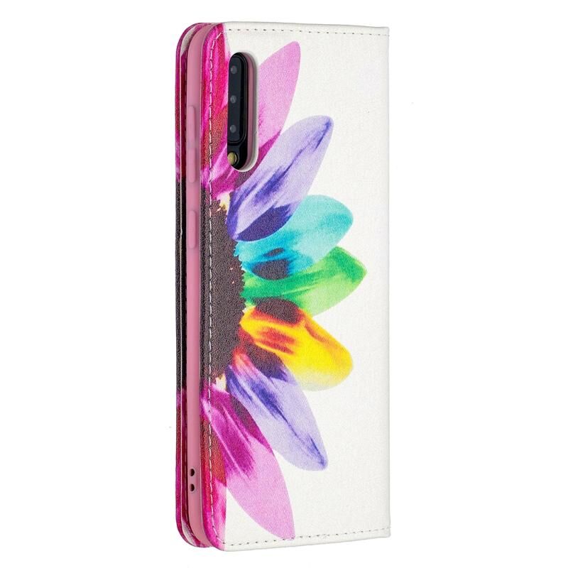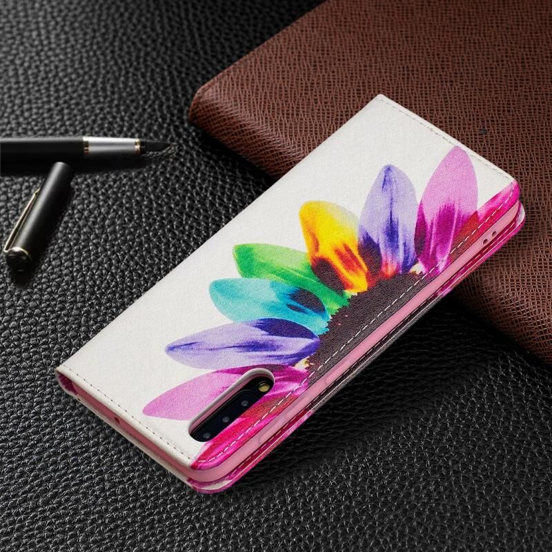 Θήκη Samsung Galaxy A50, πολύχρωμη με σχέδιο, αόρατη μαγνητική οριζόντια από δερματίνη PU με βάση & θήκες για κάρτες & πορτοφόλι (Ηλίανθος)