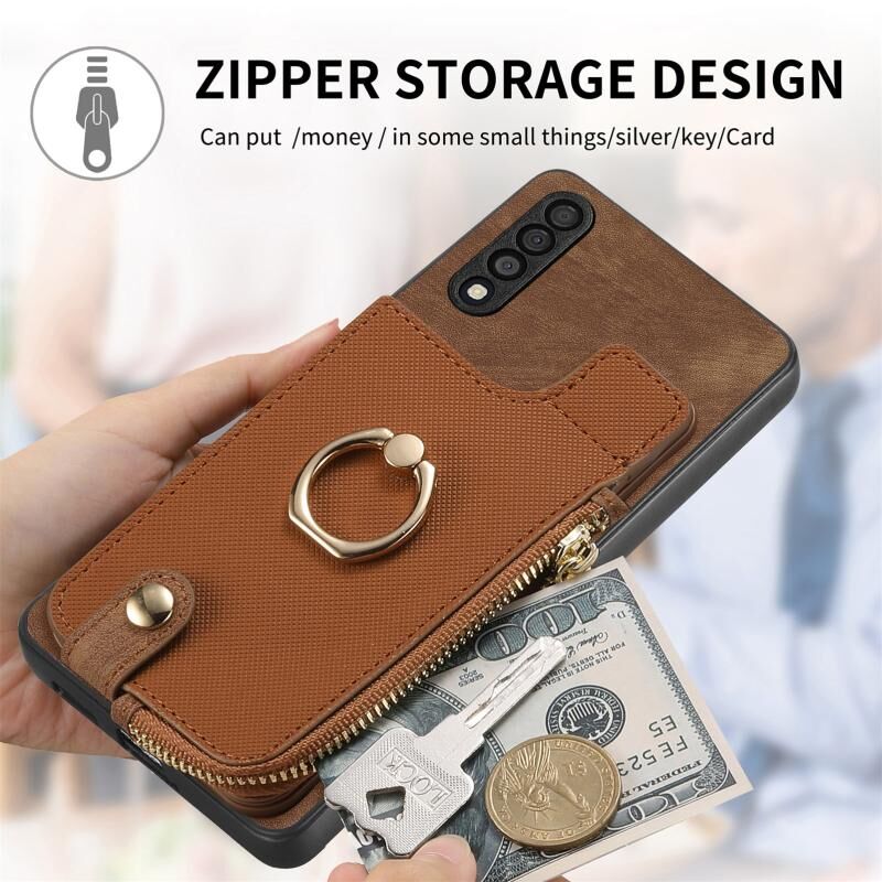 Για Samsung Galaxy A50 Cross Δερμάτινο δαχτυλίδι κάθετη φερμουάρ πορτοφόλι πίσω υπόθεση τηλεφώνου (καφέ)
