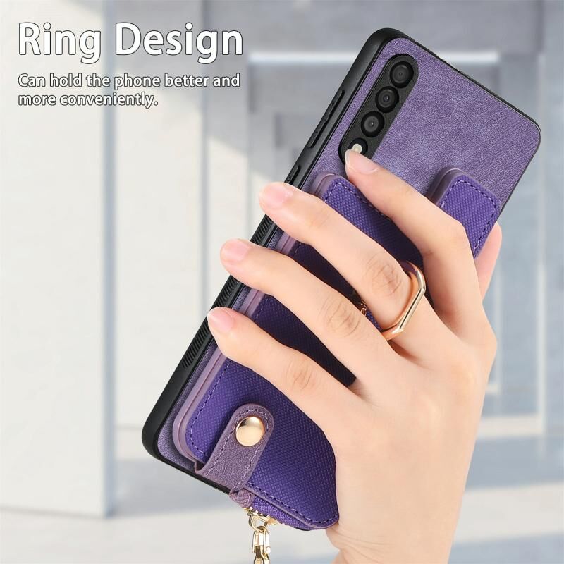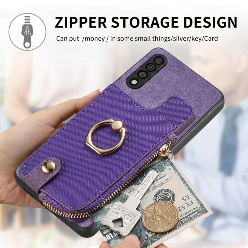 Για Samsung Galaxy A50 Cross Δερμάτινο δαχτυλίδι κάθετη φερμουάρ πορτοφόλι πίσω υπόθεση τηλεφώνου (Μωβ)