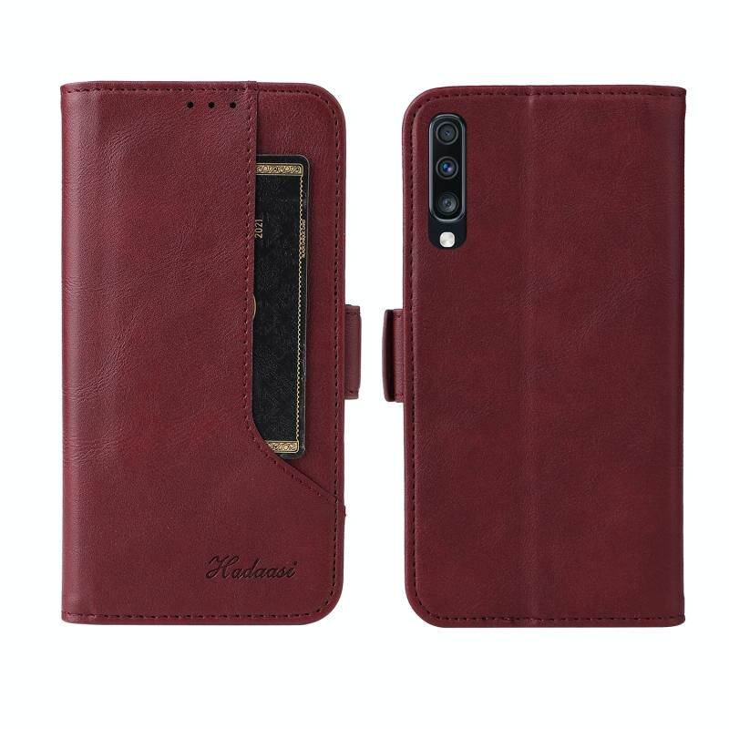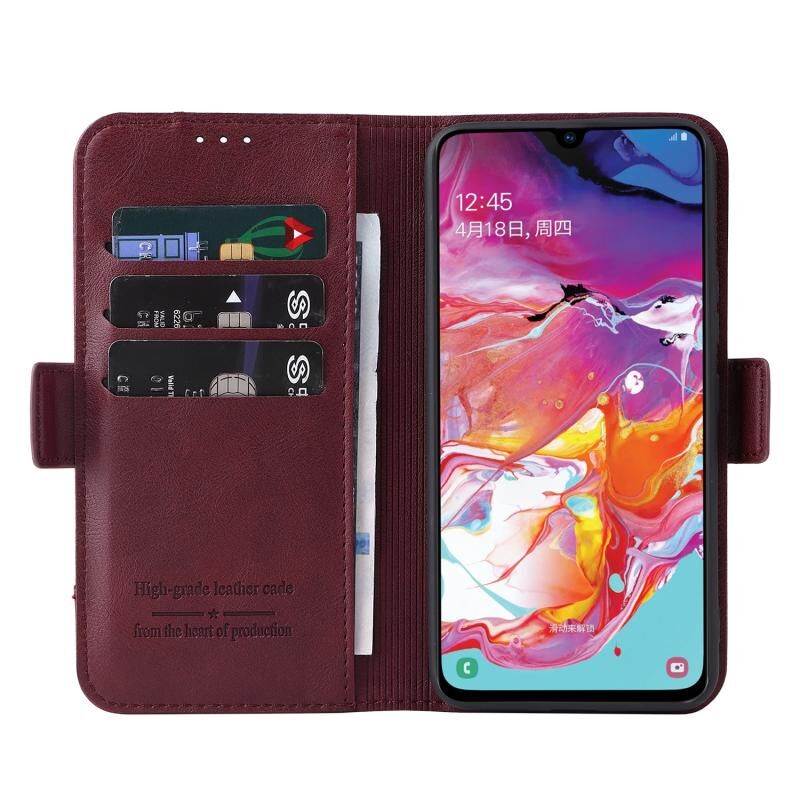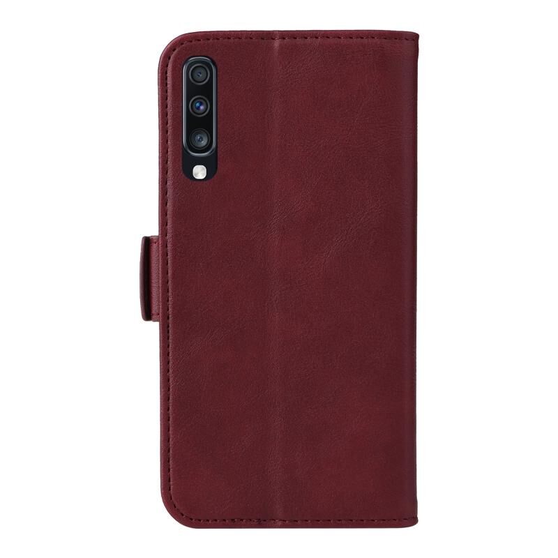 Για Samsung Galaxy A50 διπλή πόρπη κάρτα πορτοφόλι Calf δέρμα τηλέφωνο υπόθεση (κόκκινο κρασί)