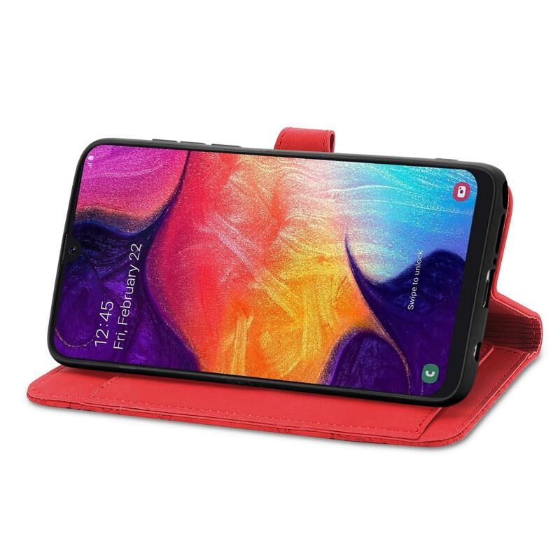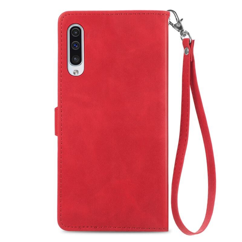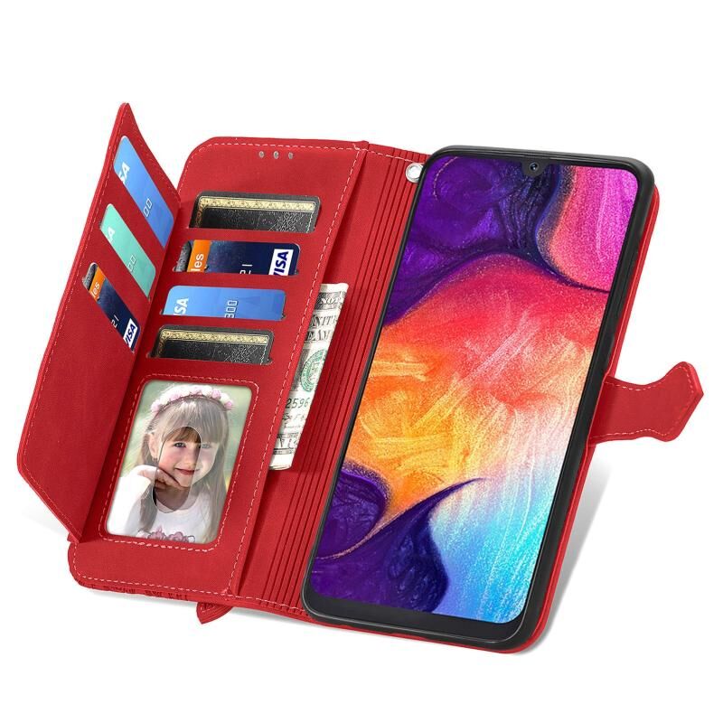 Για Samsung Galaxy A50 ανάγλυφο λουλούδι φερμουάρ δερμάτινη θήκη τηλεφώνου (κόκκινο)
