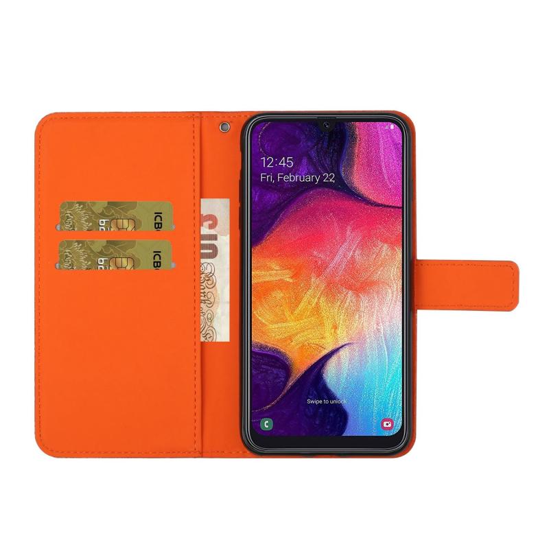 For Samsung Galaxy A50 Ethnic Style Embossed Pattern Horizontal Flip Leather Case with Holder & Card Slots & Wallet & Lanyard(Orange)