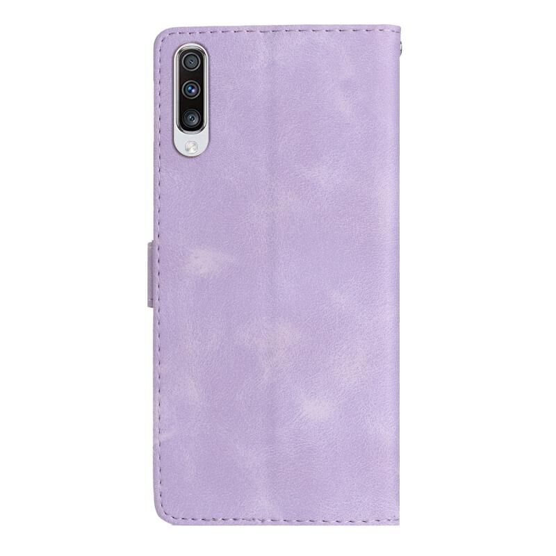 Για Samsung Galaxy A50 λουλούδι πεταλούδα ανάγλυφο μοτίβο δερμάτινη θήκη τηλεφώνου (μωβ)
