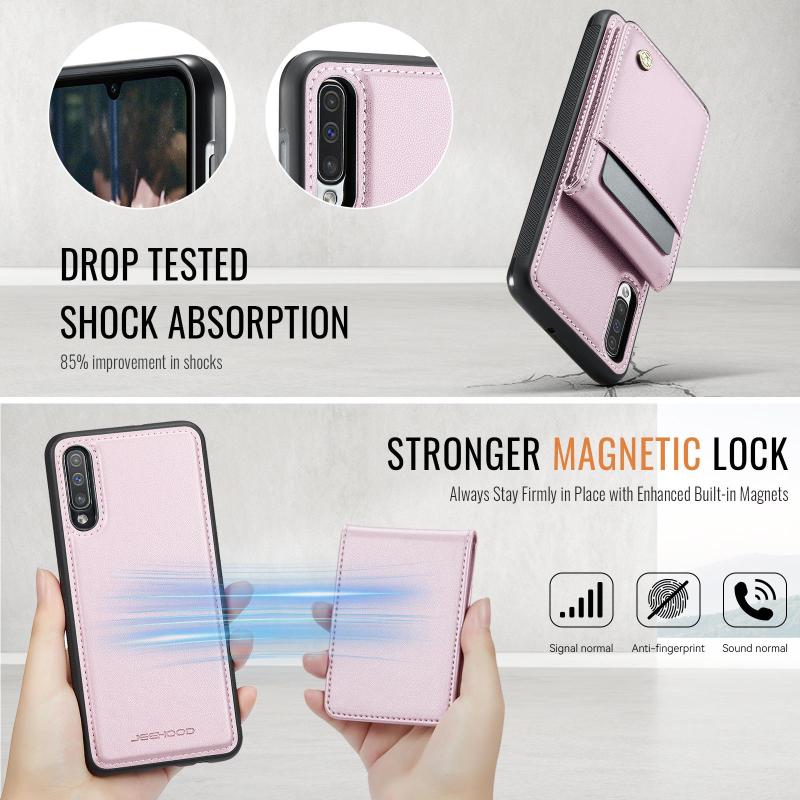 For Samsung Galaxy A50 JEEHOOD J06 British Style RFID MagSafe Card Bag PU Phone Case(Pink) (JEEHOOD)