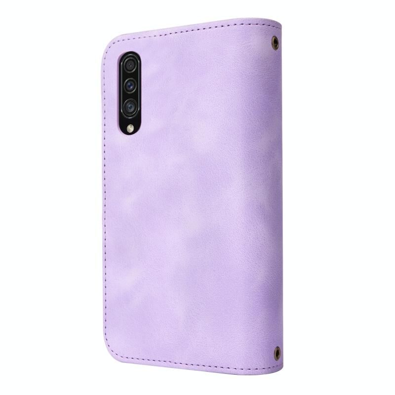 Για Samsung Galaxy A50 Πολυλειτουργική κάρτα Slot φερμουάρ πορτοφόλι δερμάτινη θήκη τηλεφώνου (Μωβ)