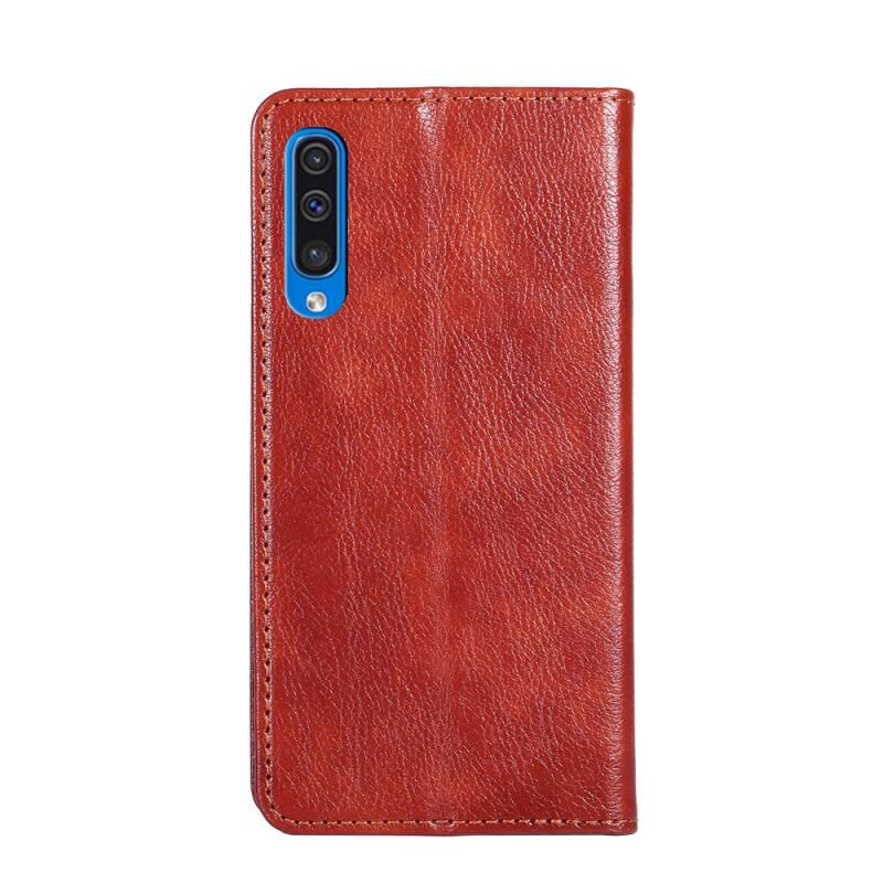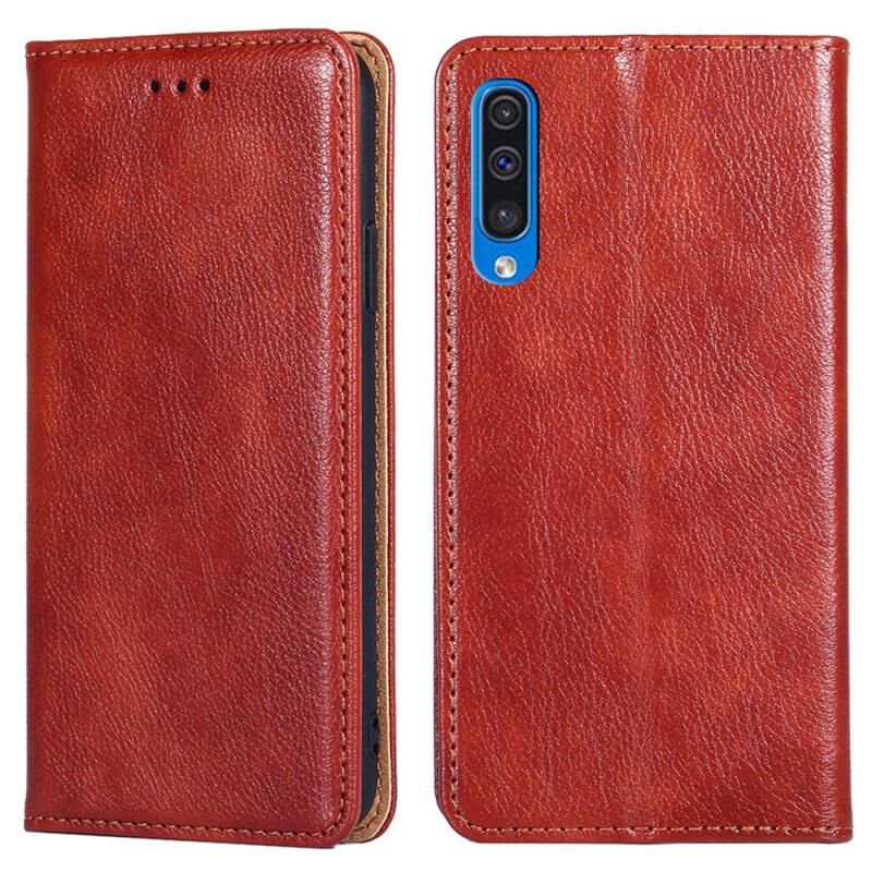 Για το Samsung Galaxy A50 PU + TPU γυαλιστερό λάδι στερεό χρώμα μαγνητική οριζόντια Flip δερμάτινη θήκη με θήκη & υποδοχή κάρτας & πορτοφόλι (καφέ)