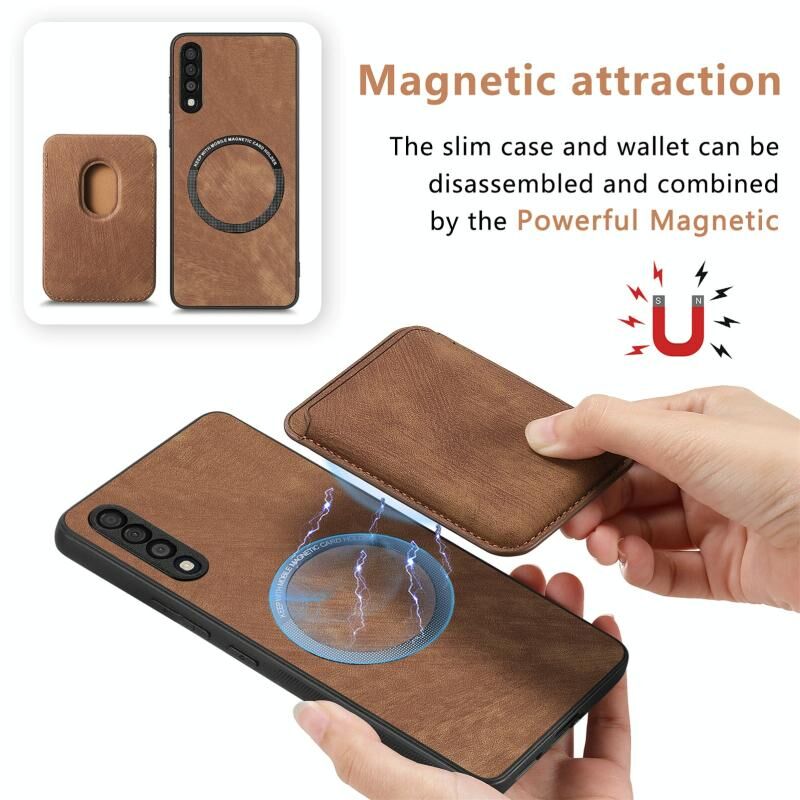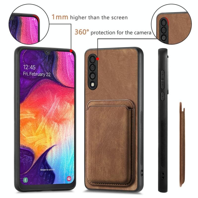 Για Samsung Galaxy A50 Ρετρό δερμάτινη τσάντα κάρτας μαγνητική θήκη τηλεφώνου (καφέ)