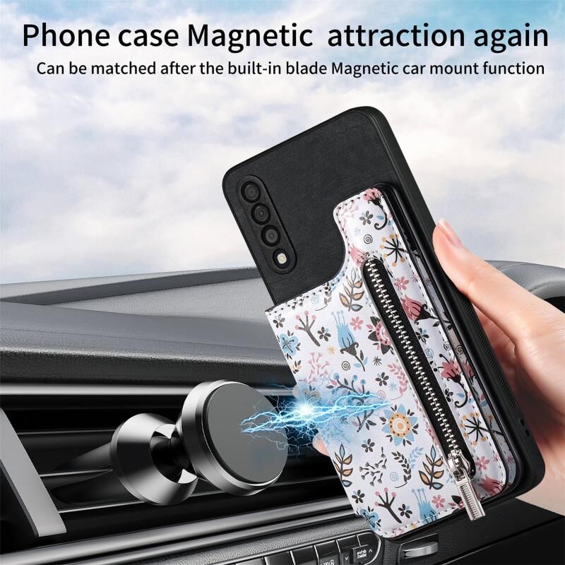 Για Samsung Galaxy A50 Ρετρό ζωγραφισμένο φερμουάρ πορτοφόλι πίσω θήκη τηλεφώνου (μαύρο)