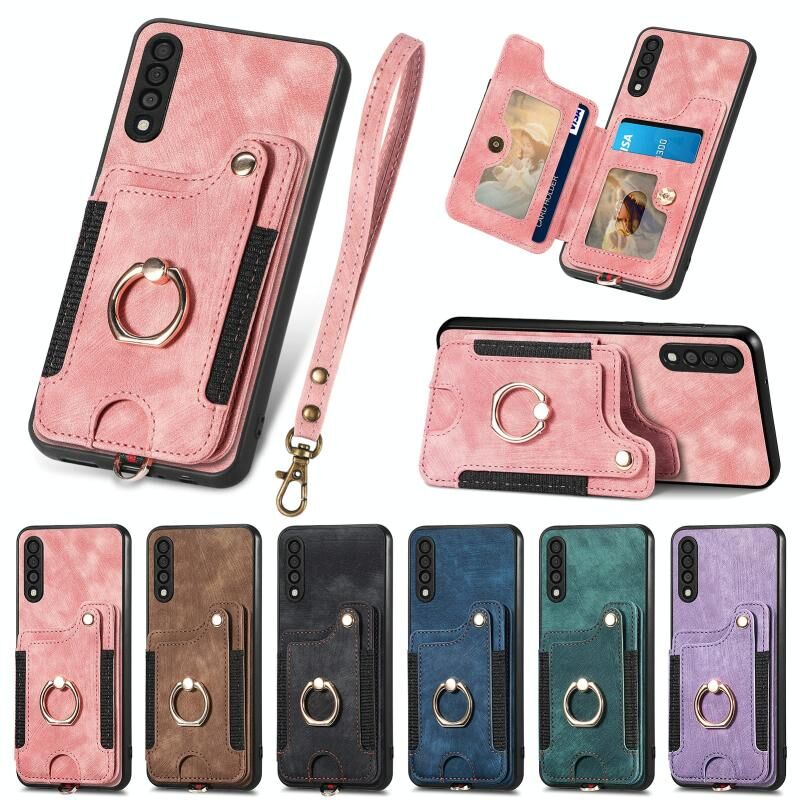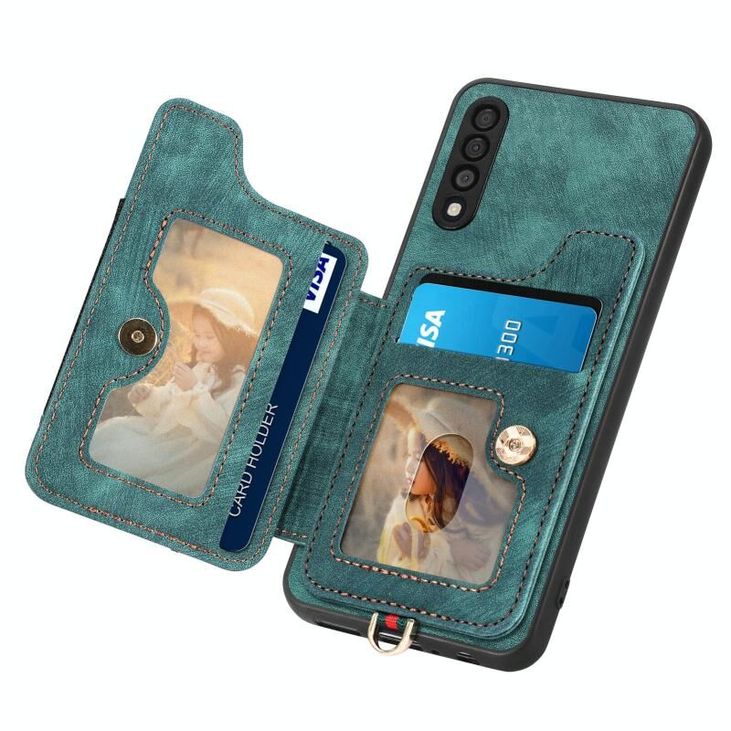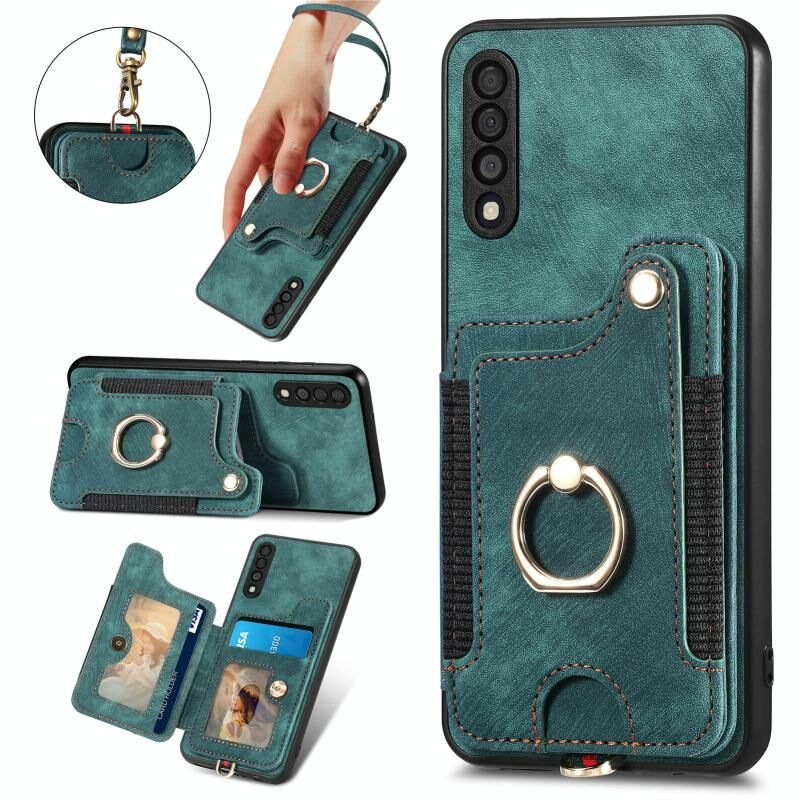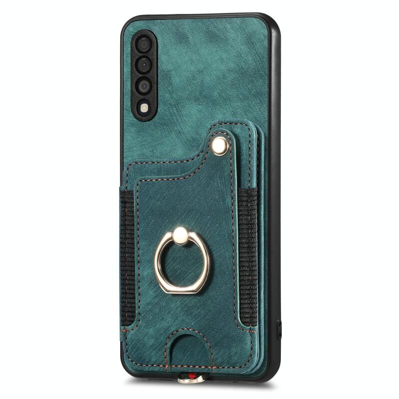 Για Samsung Galaxy A50 Ρετρό δέρμα αίσθηση δαχτυλίδι πολυ-κάρτα πορτοφόλι υπόθεση τηλεφώνου (πράσινο)