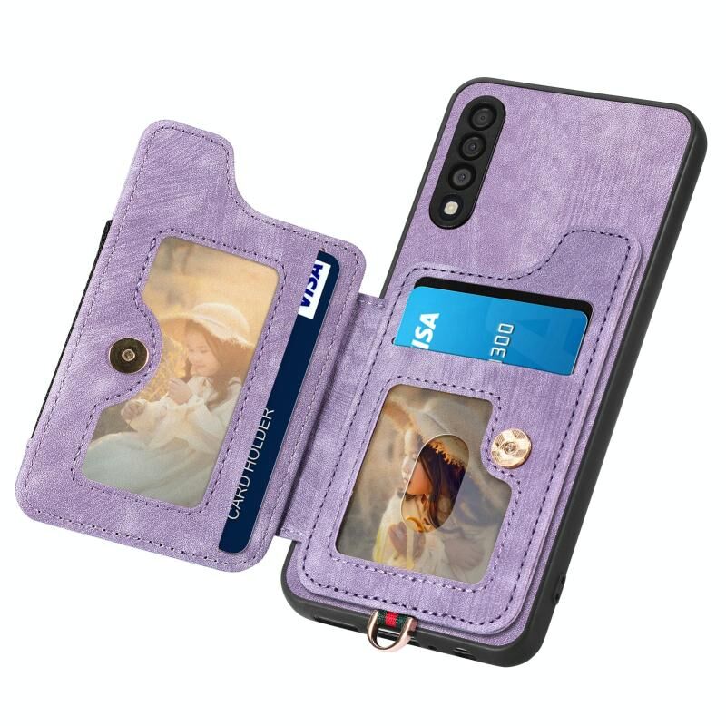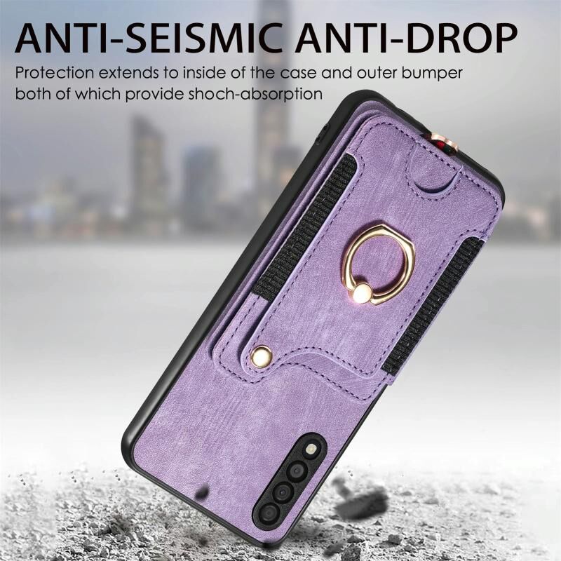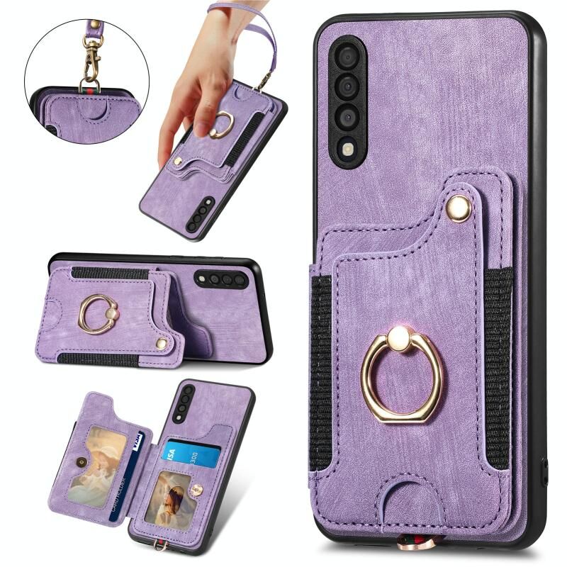 Για Samsung Galaxy A50 Ρετρό δέρμα αίσθηση δαχτυλίδι πολυ-κάρτα πορτοφόλι υπόθεση τηλεφώνου (μωβ)