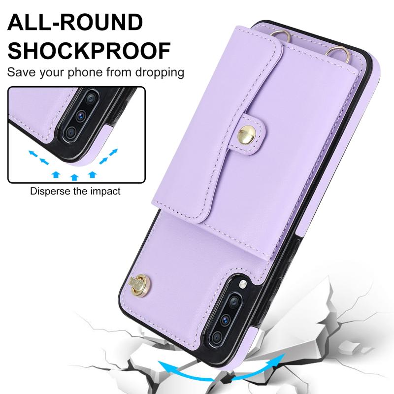 Για Samsung Galaxy A50 RFID Slot κάρτα δερμάτινη θήκη τηλεφώνου με μακρύ κορδόνι (μωβ)