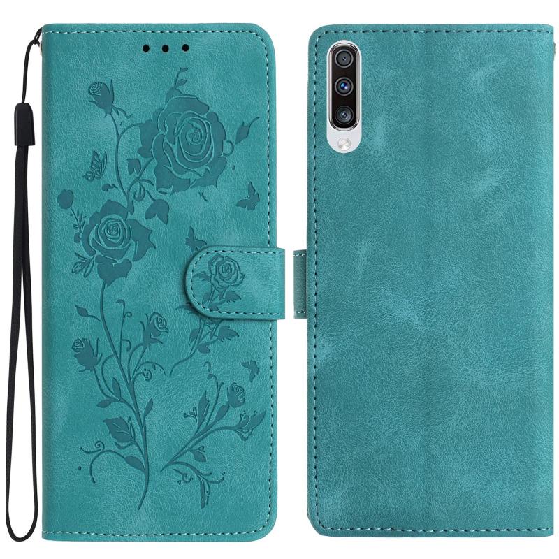 For Samsung Galaxy A50 Rose Flower Embossing Pattern Leather Phone Case(Green)
