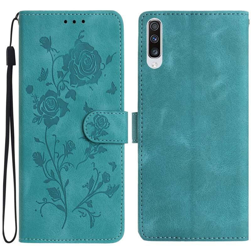 Θήκη τηλεφώνου δερμάτινη με ανάγλυφο σχέδιο ροζ άνθους για Samsung Galaxy A50 (Ροζ Χρυσό)